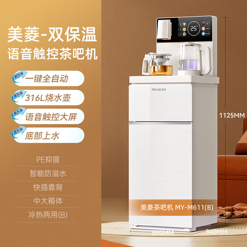 美菱(MeiLing)茶吧机智能语音2025新款一键全自动家用双壶办公室白色饮水机 【白色】双壶双保温+316L防溢壶即热制 即热制冷型 温热