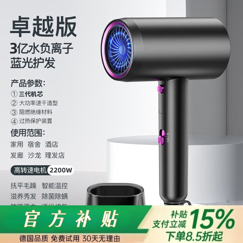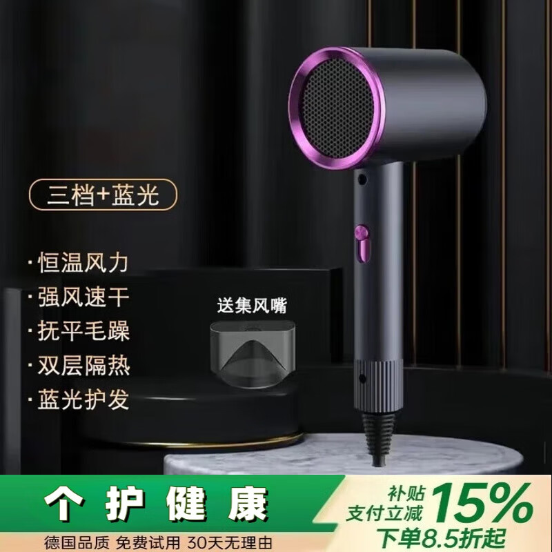 戴森德乐德系电吹风机家用速干大功率护发大风力负离子宿舍吹风筒 渐变紫13万转速顶配版(2300W)