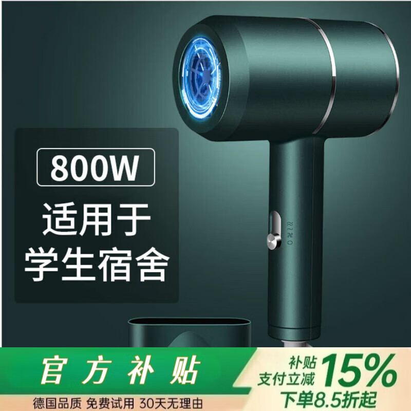 戴森德乐学生宿舍吹风机负离子家用护发大功率宿舍发廊不伤发网红电电吹风 苍岭绿 800w