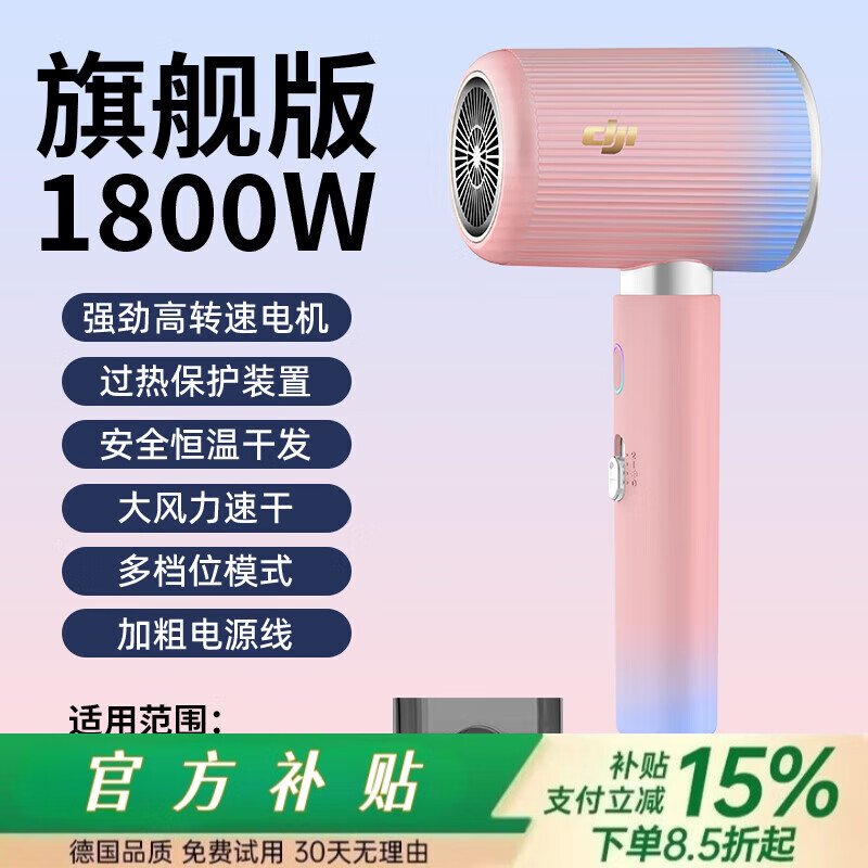 戴森德乐新款电吹风机家用速干大功率负离子护发静音学生宿舍用小 粉色1800W8亿负离子_降噪款