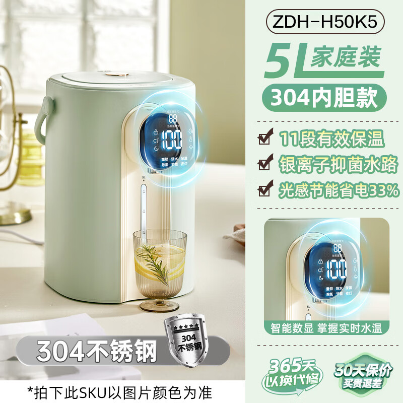 小熊(Bear)恒温智能热水壶全自动保温一体烧水壶新款家用电热水瓶饮水机 浅绿色 【可拆洗水箱】316L不锈钢内 即热制冷型