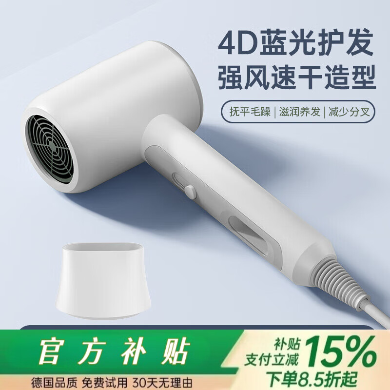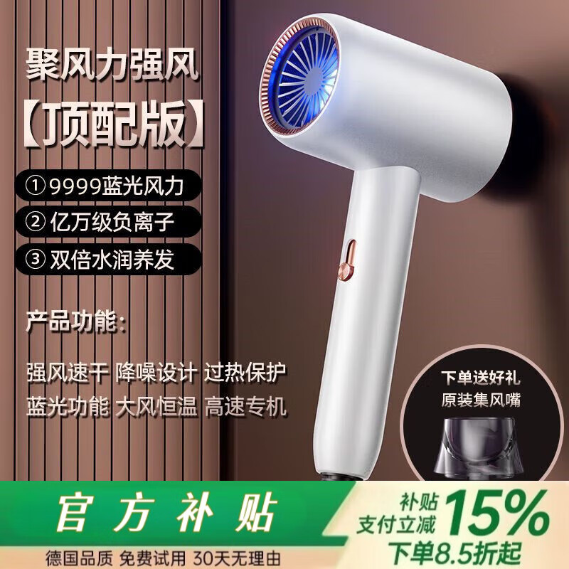 戴森德乐【30天8132件】德国有品适用电吹风机家用学生负离子护 99580強风高配款蓝光无噪音-白色
