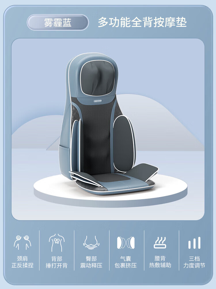 奥克斯(AUX)小型按摩椅仪器家用全身多功能电自动揉捏靠垫腰背颈椎臀部 【雾霾蓝】全身上下游走+机械手按摩+捶揉一体