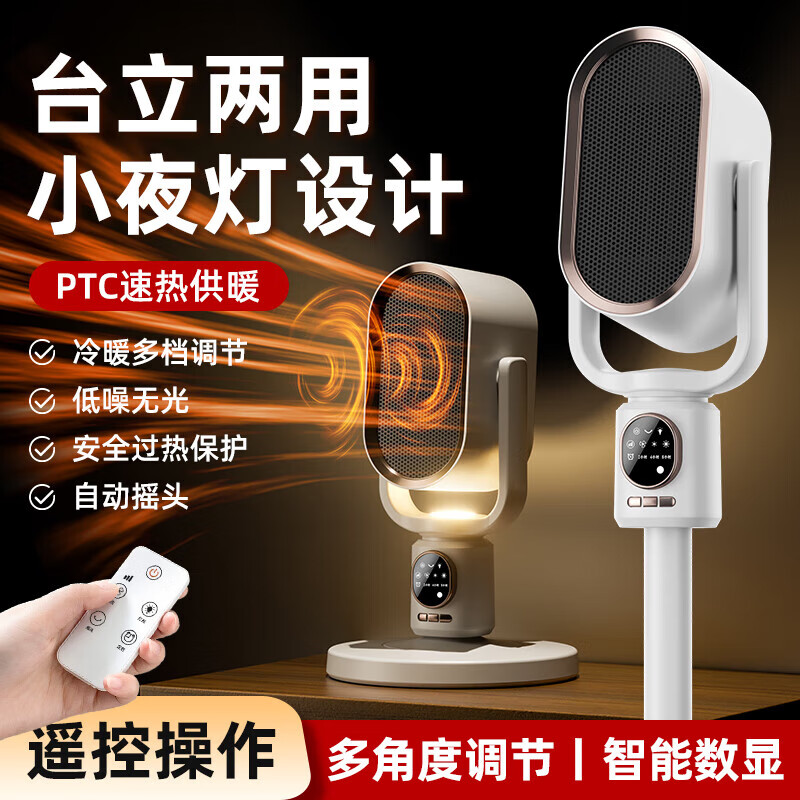 风轻杨台地两用即热暖风机取暖器自动摇头定时夜灯多功能大功率暖风机取暖器 N6大功率多功能暖风机 遥控器控制