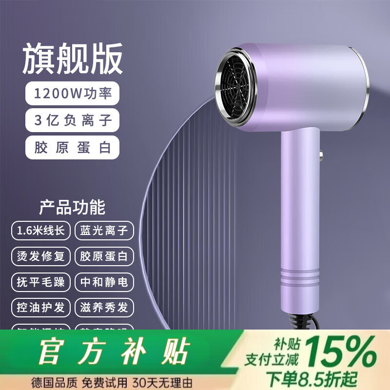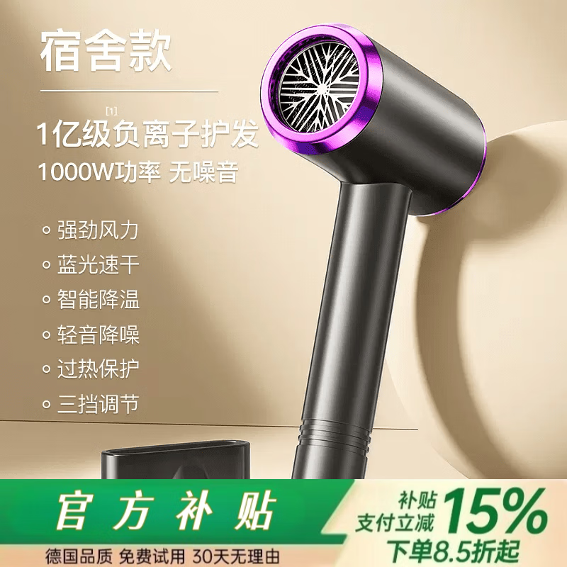戴森德乐电吹风机负离子宿舍用学生专用筒800W以下500W小功率300W 霓虹紫1200W宿舍专用3亿