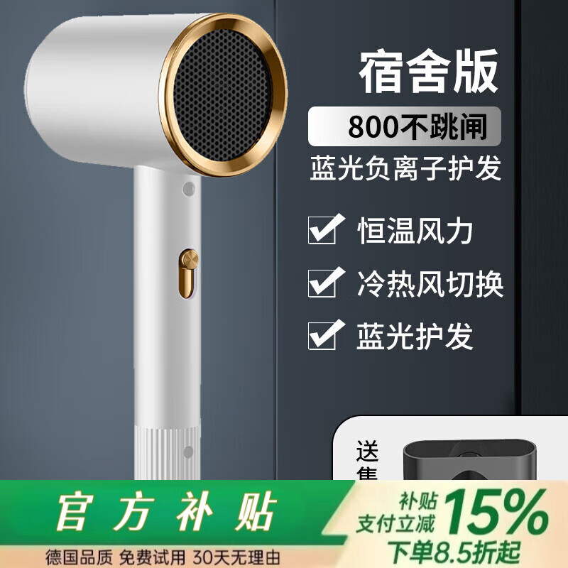戴森德乐电吹风学生宿舍网红高速吹风机大功率家用宿舍吹风筒静音蓝光恒温 B2吹风机白色 1200W