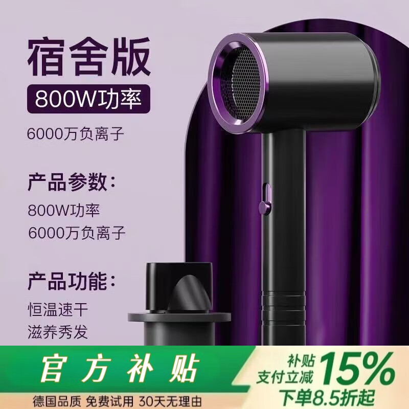 戴森德乐吹风机宿舍学生大小功率负离子护发800W1300W小型高转速干 薰衣紫宿舍版800W+大风力2400高