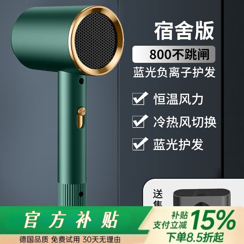戴森德乐电吹风机学生宿舍专用吹风筒负蓝光离子护发冷热风折叠吹风机 生 绿色标准版