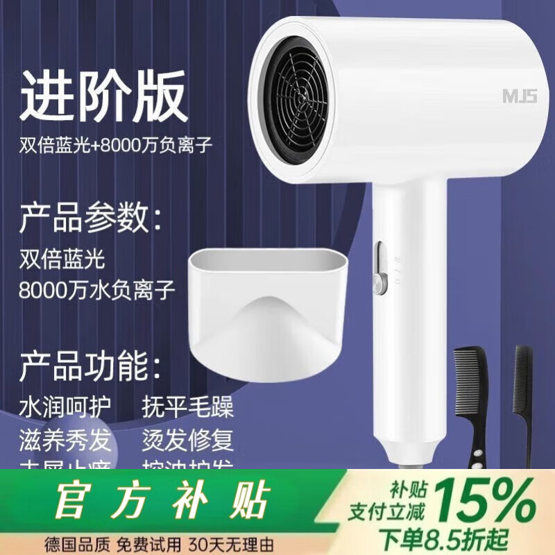戴森德乐800w吹风机学生宿舍蓝光负离子护发家用500w电吹风便携风 星耀白800w[适合学生] 默认[梳子]即将恢复36