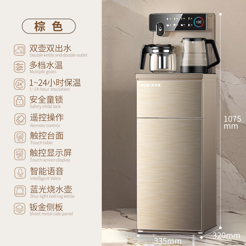 奥克斯(AUX)茶吧机家用下置水桶全自动智能客厅一体柜2025新款饮水机 【棕色】 即热制冷型 温热