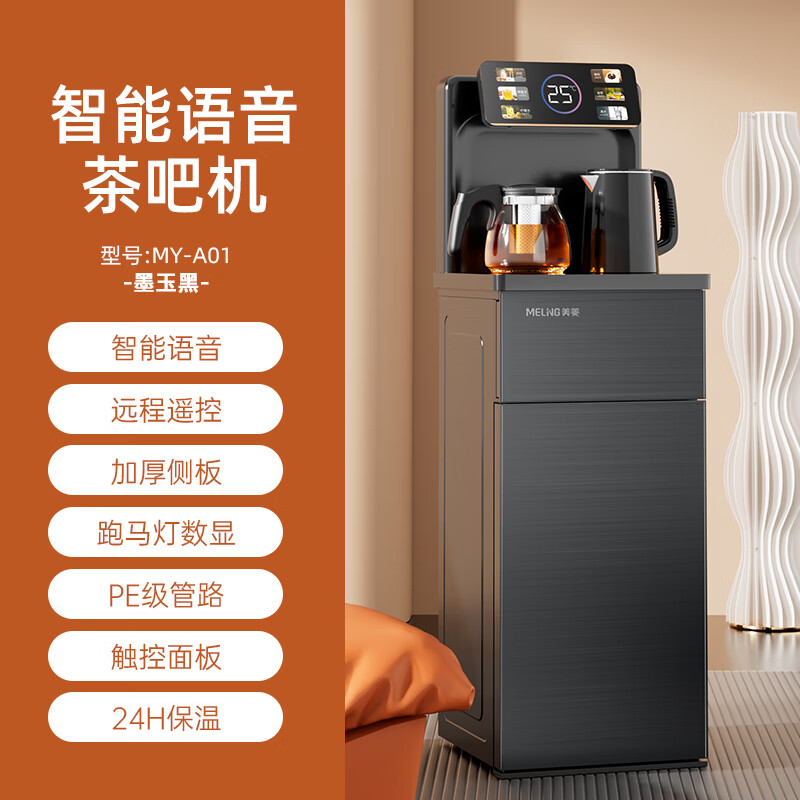 美菱(MeiLing)茶吧机家用全自动智能高端下置水桶冷热多功能立式饮水机新款 【A01黑】智能语音+PE管路+加厚侧 即热制冷型 温热