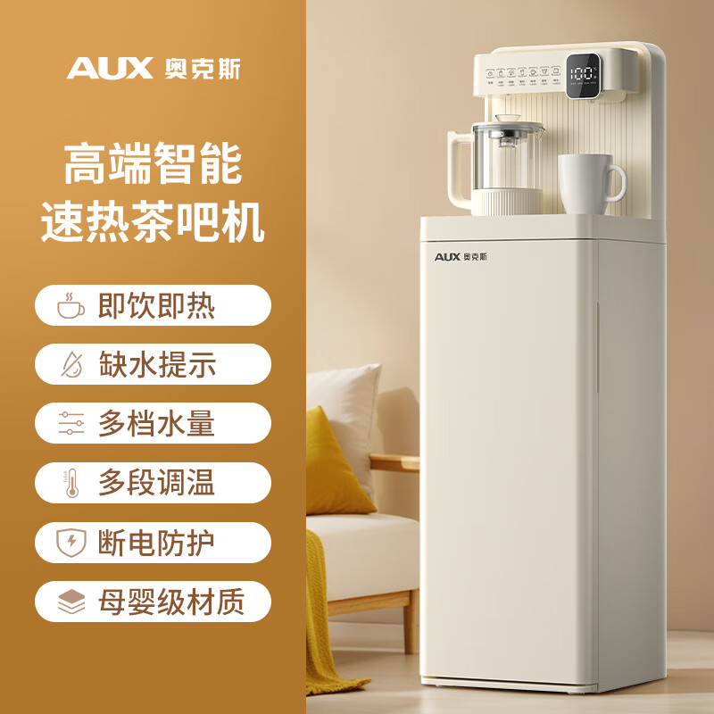 奥克斯(AUX)即热式茶吧机家用智能全自动下置水桶2025新款高端饮水机 【米黄色】 即热制冷型 温热
