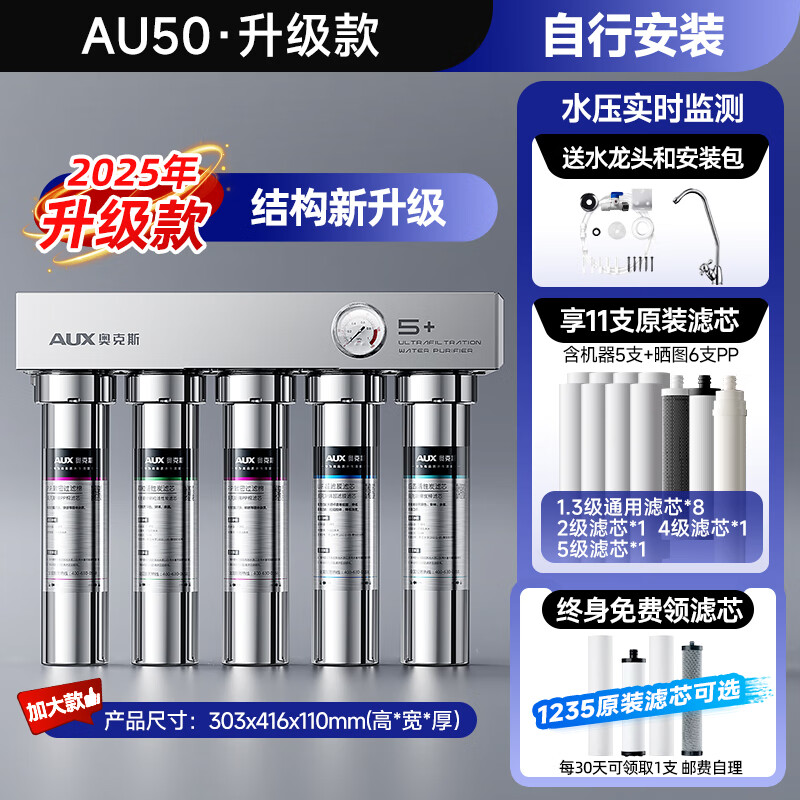 奥克斯(AUX)净水器直饮家用厨房自来水超滤净化商用前置过滤厨下饮水机 升级款-自行安装 丨享11芯+免费领滤 即热制冷型