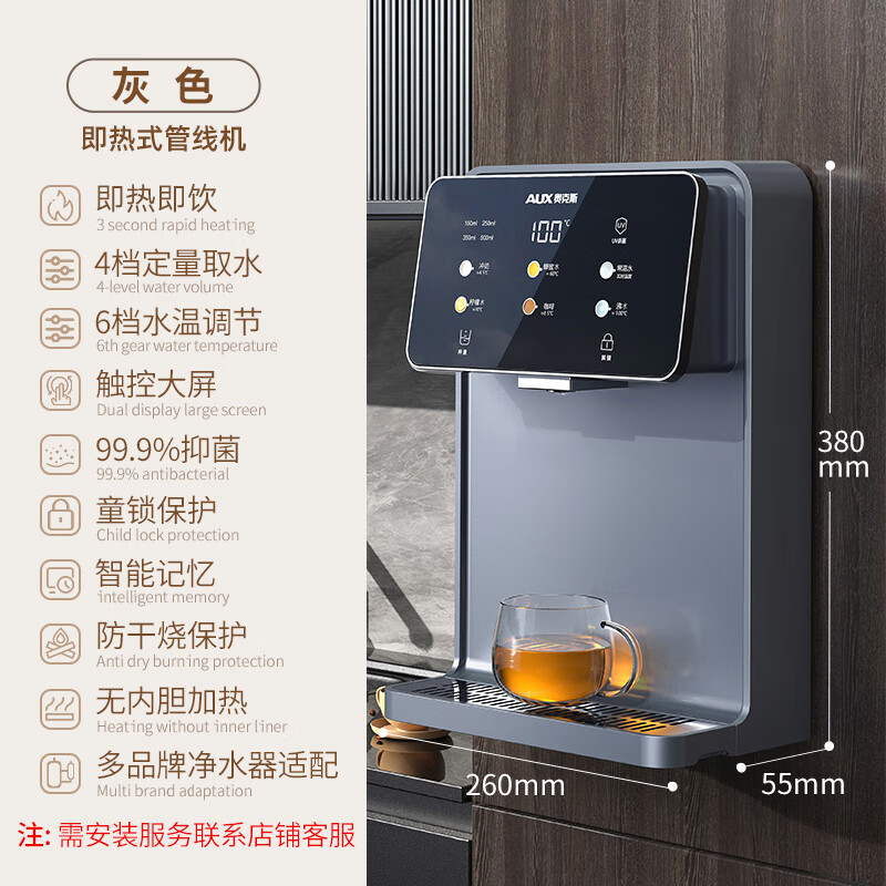 奥克斯(AUX)即热管线机家用餐边柜壁挂式直饮机台净水器2025新款饮水机 灰色 即热制冷型 温热