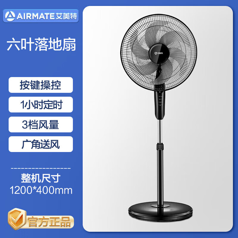 艾美特(AIRMATE)电风扇家用强力落地风扇大风力电扇节能省电摇头台扇宿舍 黑色六叶爆款推荐