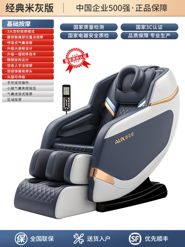 奥克斯(AUX)按摩椅子全身电自动智能家用小型2025新款老人专用揉捏太空 基础款【仅腰背基础按摩】
