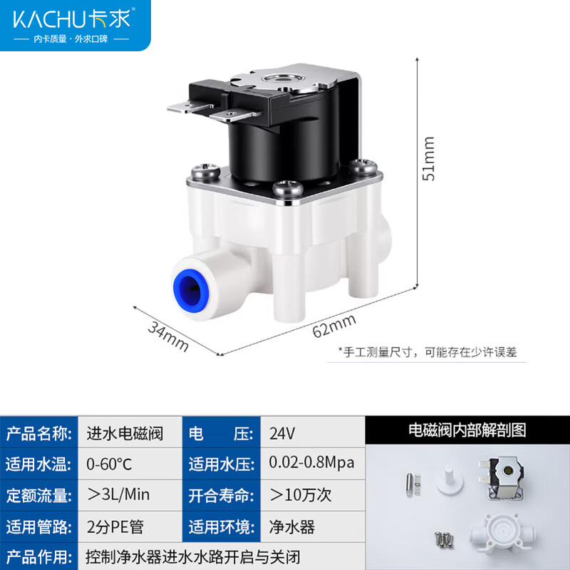 卡求净水器废水电磁阀通用24V2分管进水废水比过滤器开关家用反渗透纯水机配件