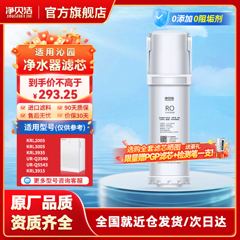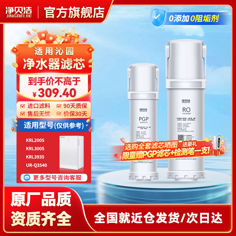 净贝洁适配沁园净水器滤芯KRL2005/3005/3935/UR-Q3540/RO膜PGP复合滤芯 全套2支装UR-Q3540晒涂赠PGP滤芯