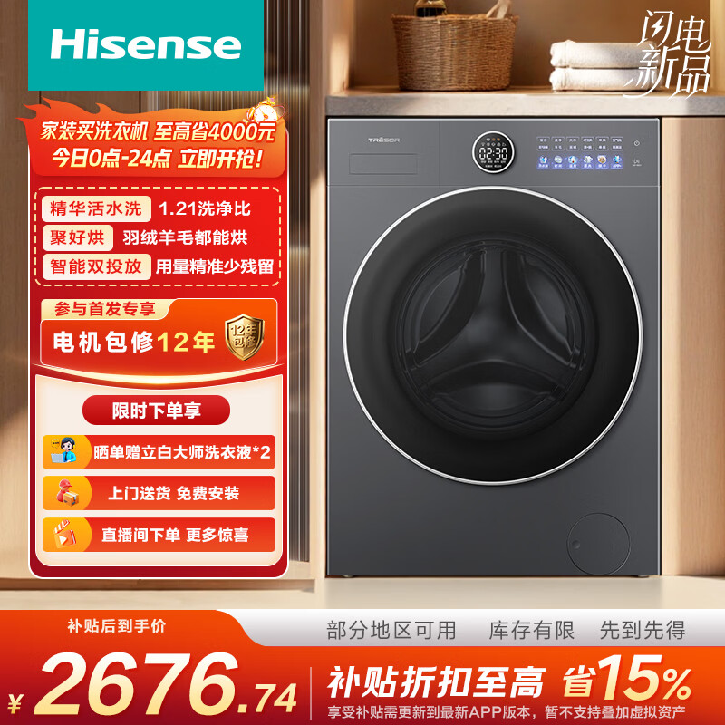 海信(Hisense)洗衣机大薄荷E5S滚筒全自动洗烘一体 12KG大容量 超薄精华活水洗WD120E5S以旧换新补贴 京东自营
