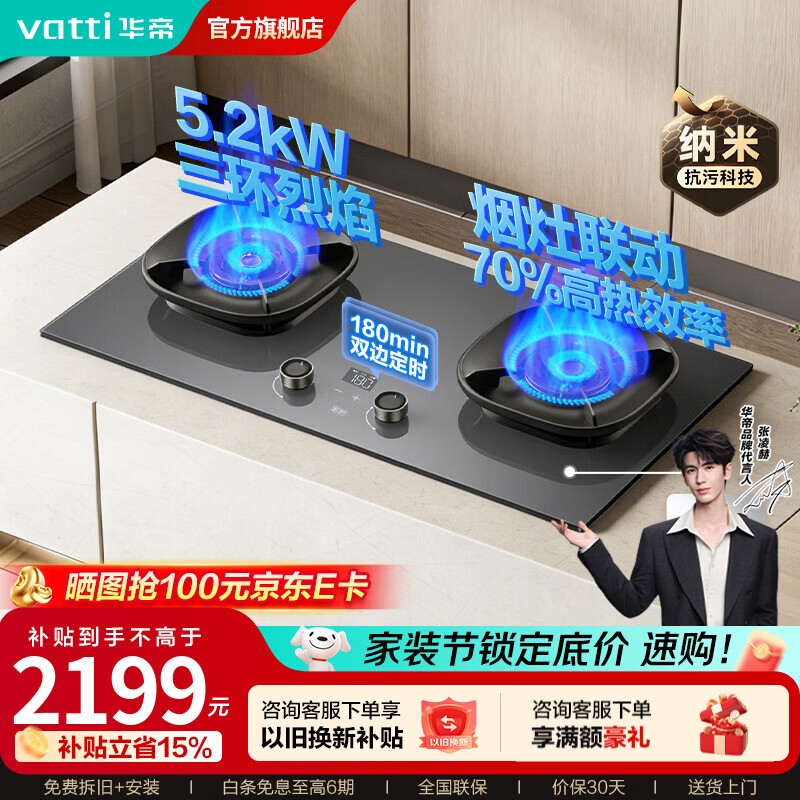 华帝(VATTI)官方油烟机燃气灶具套装小飞碟小飞翼一级能效可选定时台式两用双灶煤气天然气5.2kW10309系列 i10310D双边定时5.2kW天然气