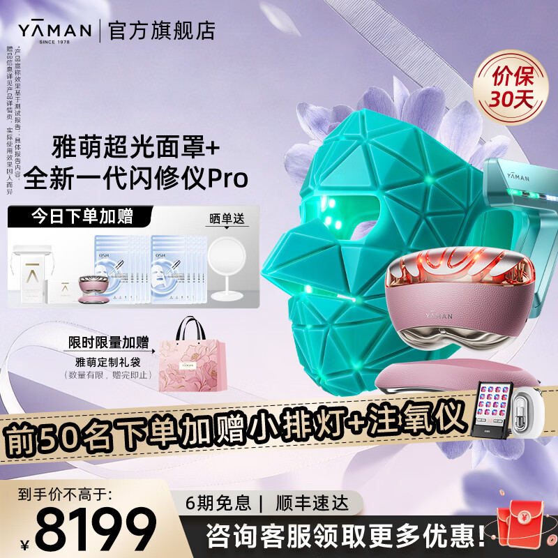 雅萌【综艺同款】超光面罩美容仪【送女生礼物】LED面罩绿光美白紧致抗皱面部大排灯生日情人节礼物 【组合推荐】雅萌超光面罩+闪修仪PRO