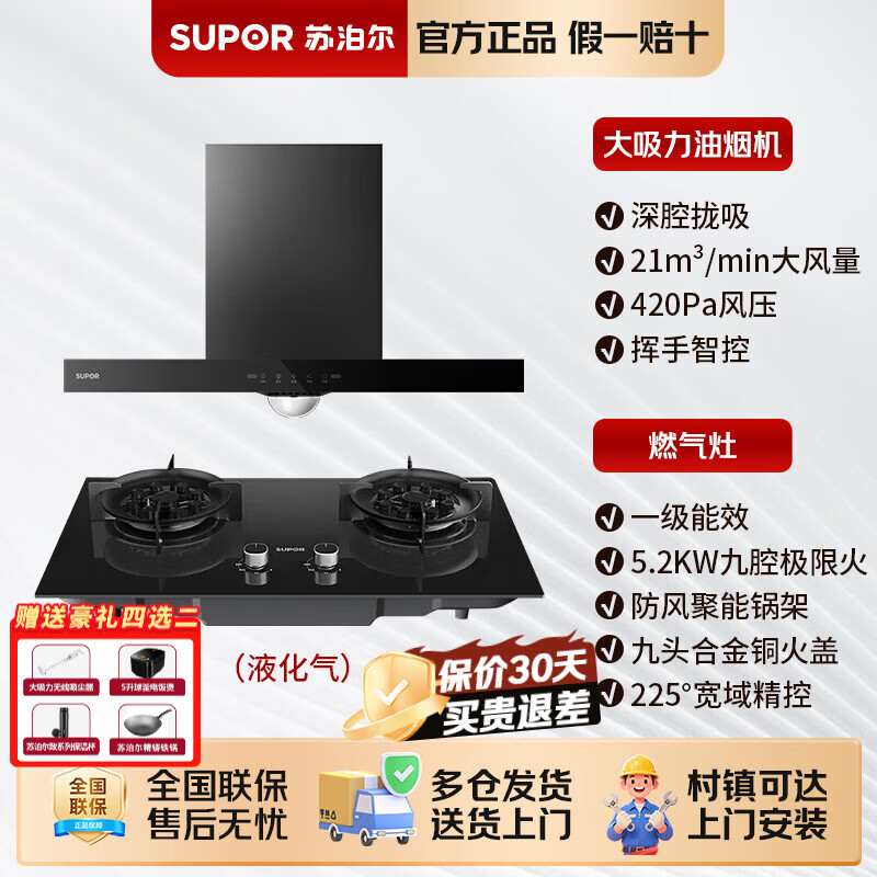 苏泊尔油烟机灶具套装家用大吸力抽烟机燃气灶具一级能效厨房烟灶套装 【畅销套装优选】搭配5.2KW聚能猛火灶(液化气)