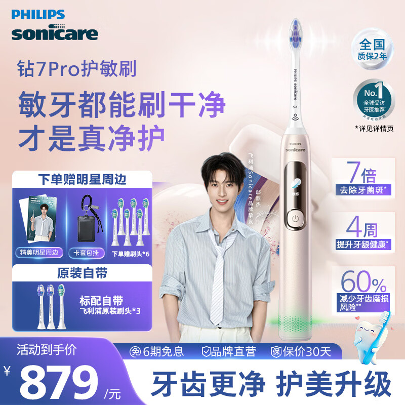 飞利浦(PHILIPS)邱鼎杰推荐Sonicare电动牙刷钻石7系Pro护敏刷棉花糖刷头情侣款生日官方旗舰生日礼物 【全年刷头】钻7Pro曙光金