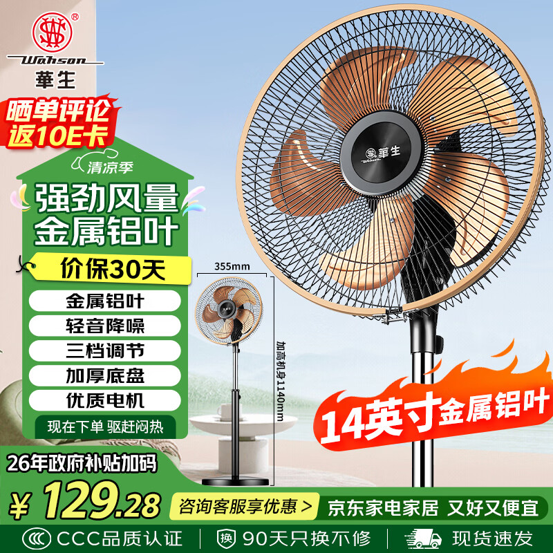 华生(Wahson)电风扇/落地扇/金属铝叶风扇/低噪大风量宿舍办公扇商务家用省电立式电扇FS-D1403