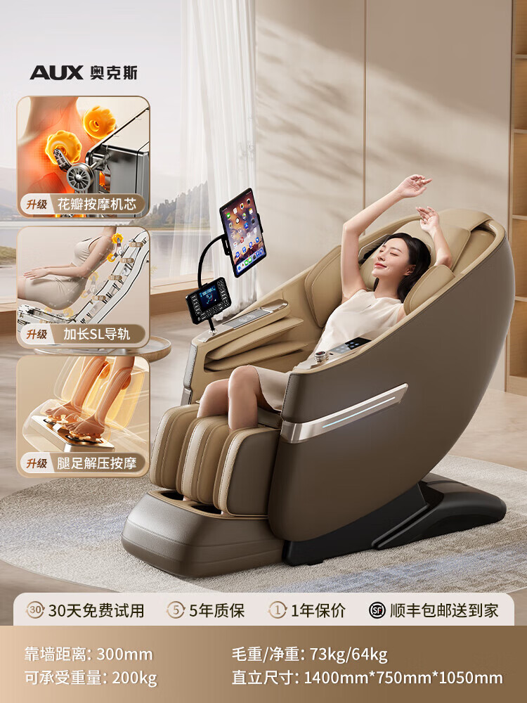 奥克斯(AUX)按摩椅2025新款智能家用全身多功能豪华零重力老人沙发躺椅 柔米棕
