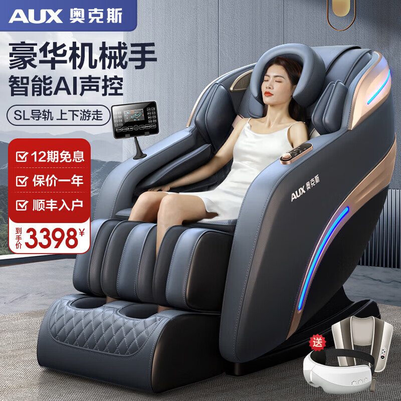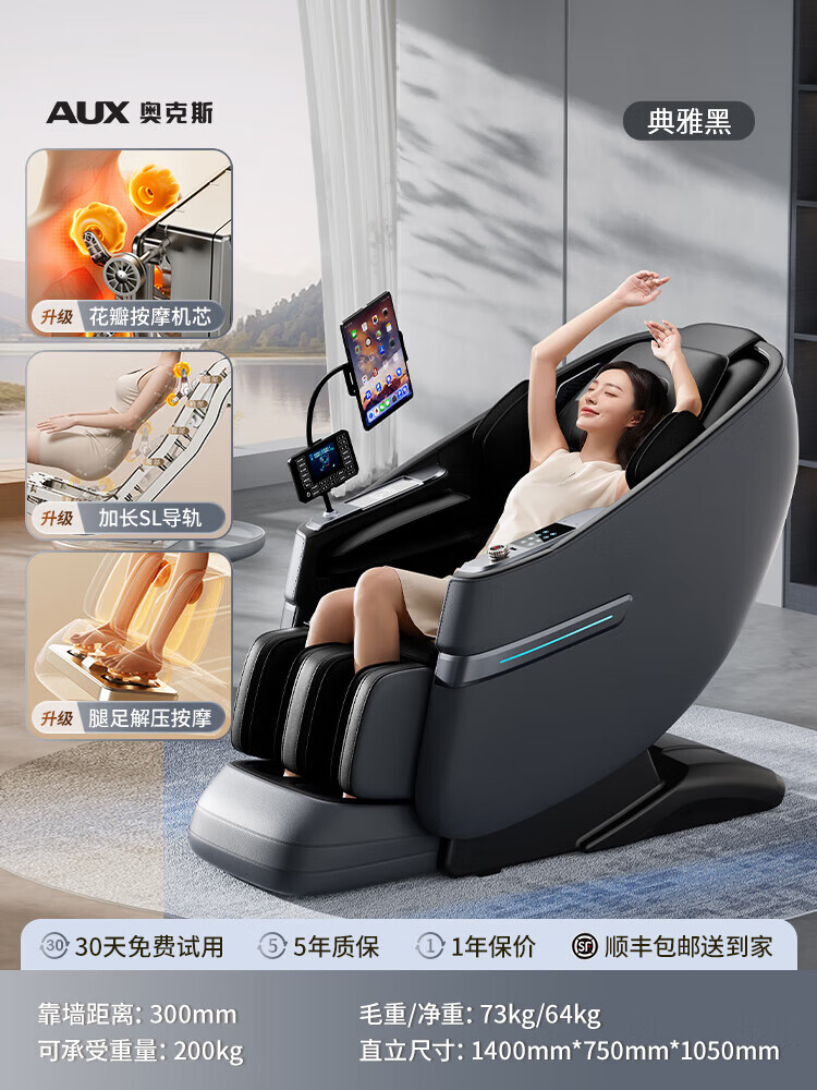 奥克斯(AUX)按摩椅2025新款智能家用全身多功能豪华零重力老人沙发躺椅 典雅黑