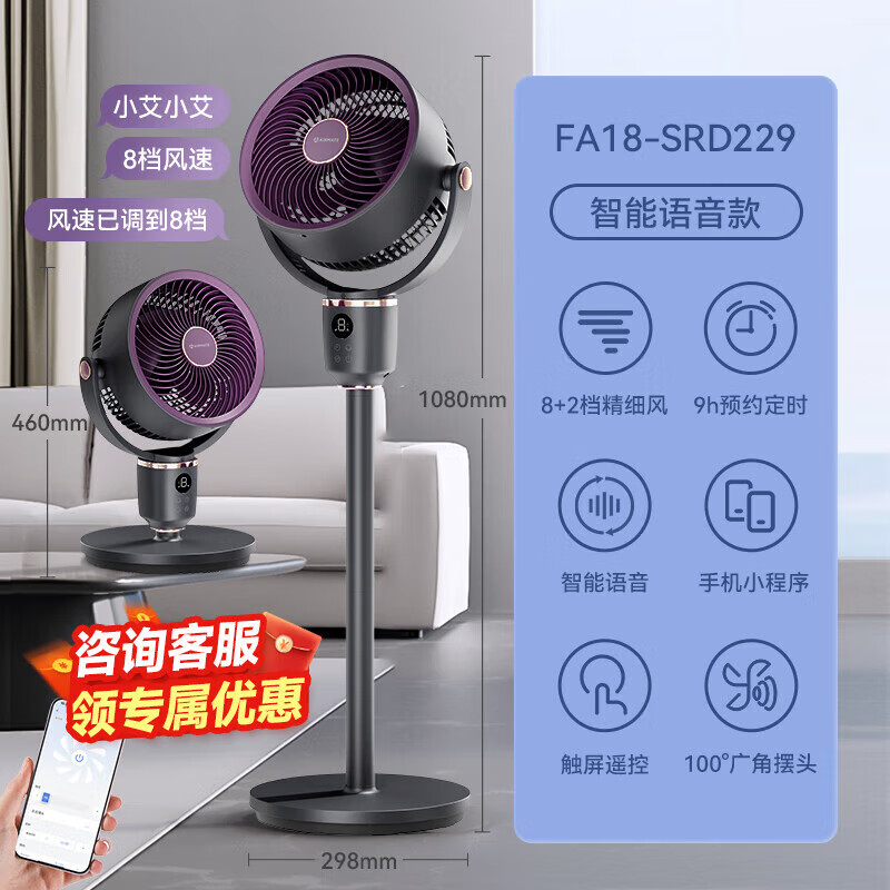 艾美特(AIRMATE)空气循环扇家用电风扇AI语音3D自动摇头落地扇台式两用新款 黛紫灰【3D摇头 语音声控】性价比之王