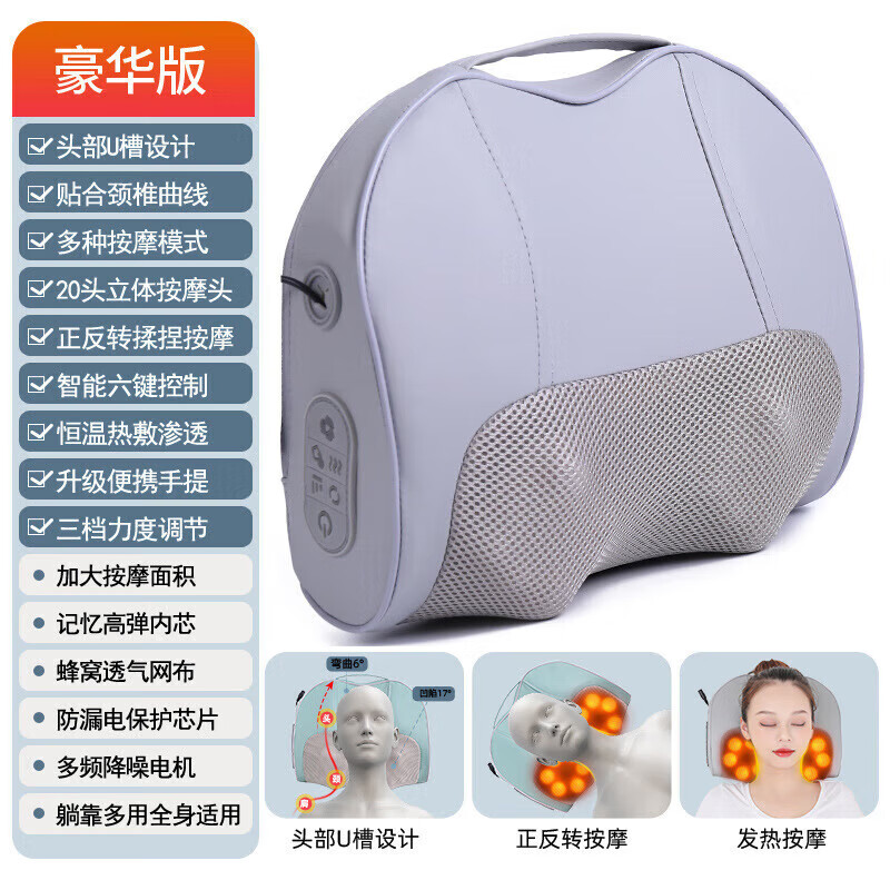 小米(MI)生态链同款颈椎按摩器背部腰部颈部肩颈多功能全身靠垫揉捏仪家用腰智能 手提豪华灰色款款