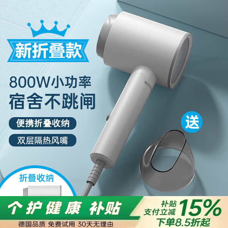 戴森德乐电吹风机学生宿舍专用小功率男女折叠吹风机便携大学生寝室风筒500W800W1000W以下负离子不伤发 白色800W可折叠(吹风机学生宿舍专用) 2400万负离子+胶原蛋白护发