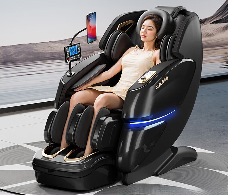 奥克斯(AUX)双4D品牌新款智能按摩椅子全自动家用全身多功能太空舱电动 高配黑【54指触感/360°腿肚揉搓】