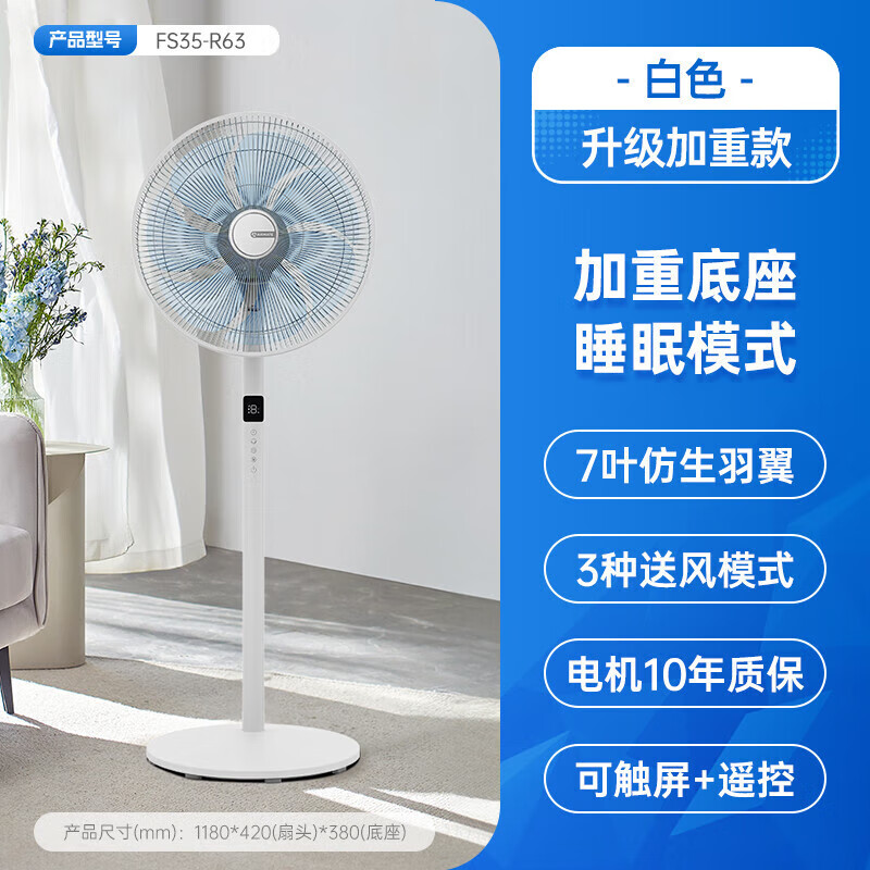 艾美特(AIRMATE)电风扇落地扇轻音家用电扇大风力台式风扇7叶遥控摇头扇R63 白色-底盘增重 安全升级