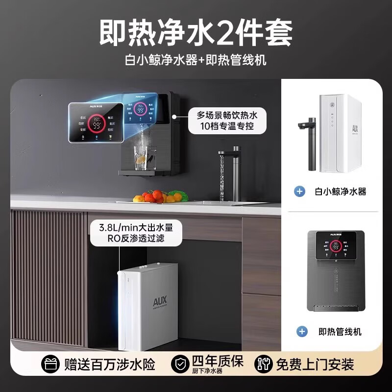 奥克斯(AUX)净水器套装家用直饮壁挂式管线机加热一体RO饮水机 套餐A 【温热净水两件套】销量top1 即热制冷型