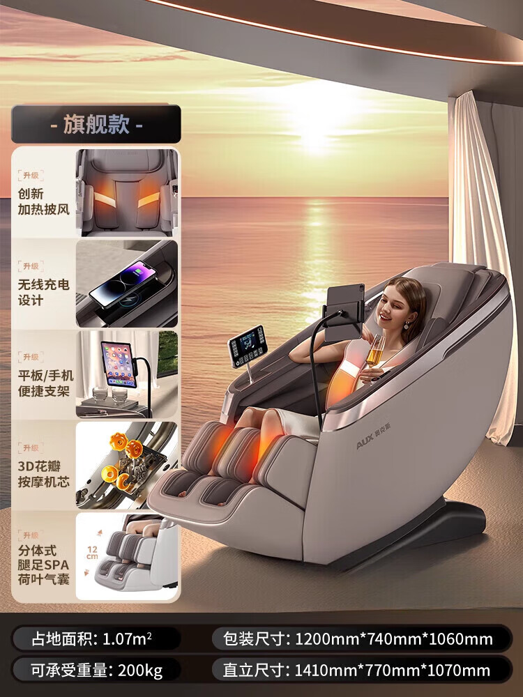奥克斯(AUX)按摩椅2025新款智能家用全身多功能豪华零重力老人沙发躺椅 柔米棕