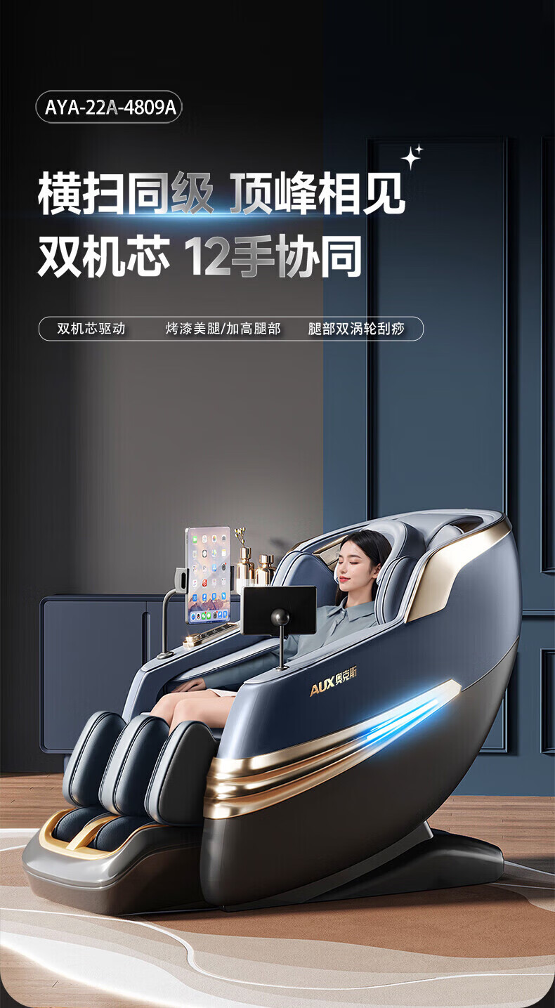 奥克斯(AUX)新款按摩椅家用全身智能电动太空轻奢豪华头等舱多功能沙发 冰川白 【精准按摩/轻奢豪华/智能检测】