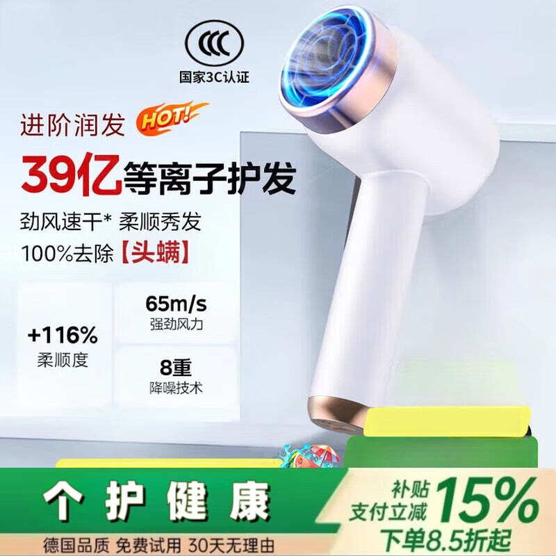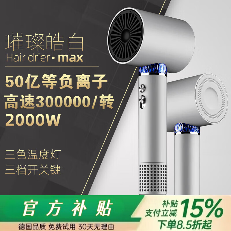 戴森德乐高速电吹风机家用大功率不伤发负离子护发静音速干大风力风 白色