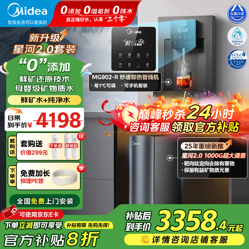 美的(Midea)星河2.0净水机净矿净水器母婴直饮0阻垢厨下RO反渗透矿物质直饮加热一体机管线机套装 【星河2.0净矿】净水器+即热管线机套装
