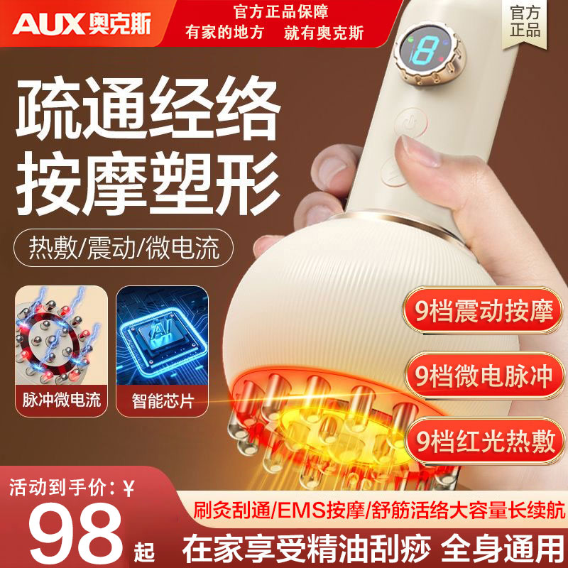 奥克斯(AUX)经络刷刮痧疏通按摩仪器电动筋络梳多功能全身家用揉腹加热神器震动美容背部手臂腿肩颈肚子按摩刷 旗舰款【刷/灸/刮三位一体+27档可调+五瓶精油】 送爸爸妈妈父母亲节日高档实用生日礼品物