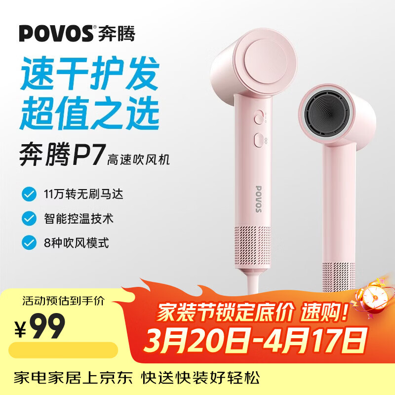 奔腾(POVOS)高速电吹风机家用负离子吹风筒新一代大功率速干P7情人节生日礼物送女友 【奔腾P7】慕斯粉【性价比首选】