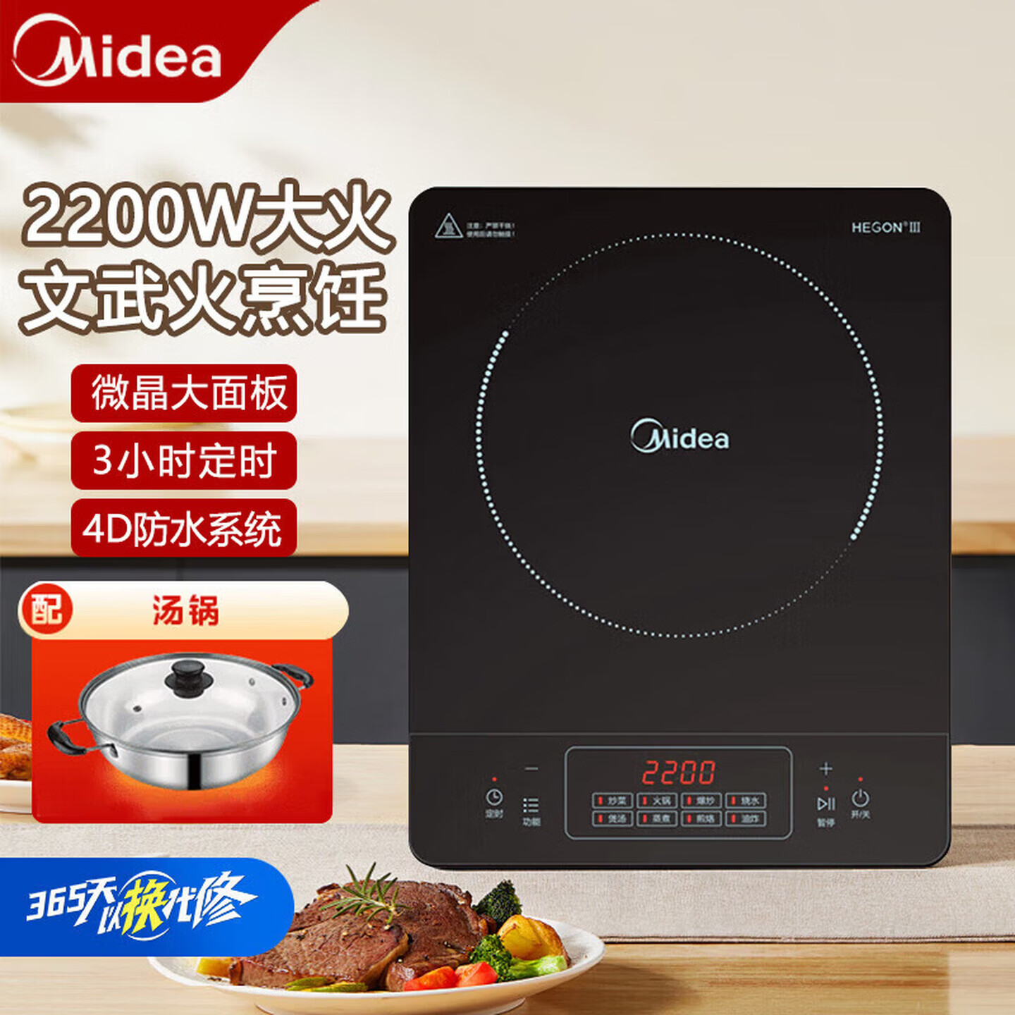 美的(Midea)电磁炉家用大功率电池炉多功能爆炒火锅炉套装智能电陶炉全套带锅一体加大面板新款超薄电炉灶 配汤锅【170mm大线圈】
