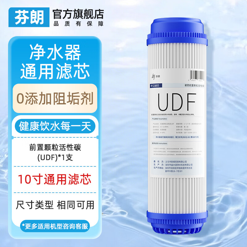 芬朗净水器滤芯10寸通用五级PP棉100G反渗透RO膜前后置活性炭滤芯CTO/T33家用过滤器纯水机UDF配件 【10寸通用】平口前置颗粒活性碳(UDF)*1支