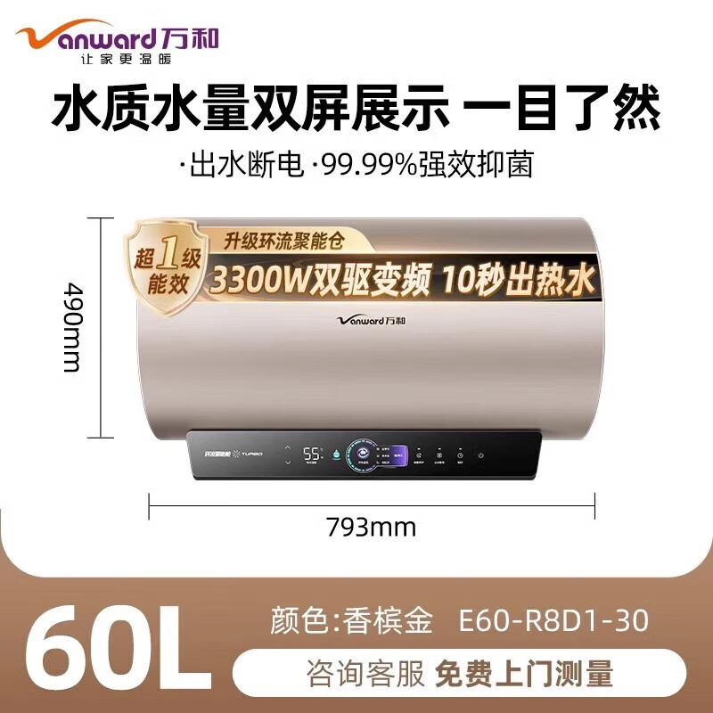 万和(Vanward)矿泉浴R8电热水器60升速热家用储水式官方洗澡一级 E60-R8D1-30【60L】 10秒出热水