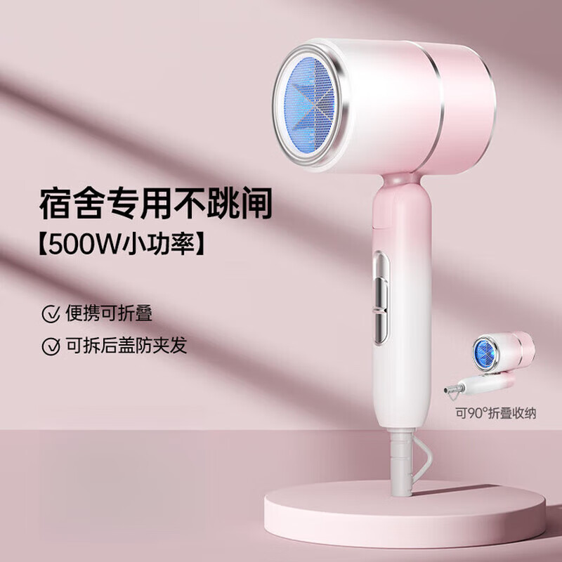 戴森德乐吹风机学生宿舍专用电吹风机家用500w护发小功率速干冷热风折叠便携式800w吹风筒男女大学 樱花粉 -学生宿舍专用500W 折叠便携+低噪静音+三档风温