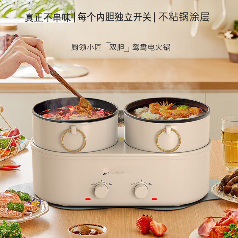 小米(MI)米家生态链同款家用鸳鸯电火锅分体式不粘锅煎炒一体锅电热料理锅多功能电煮锅 默认 白色双内胆鸳鸯锅(不含蒸笼)