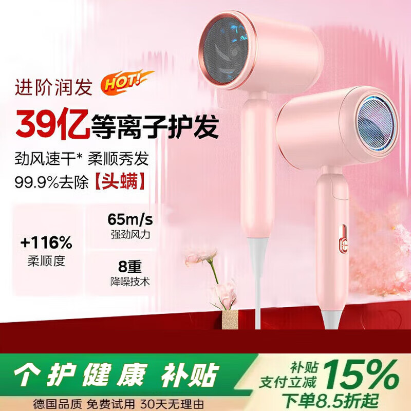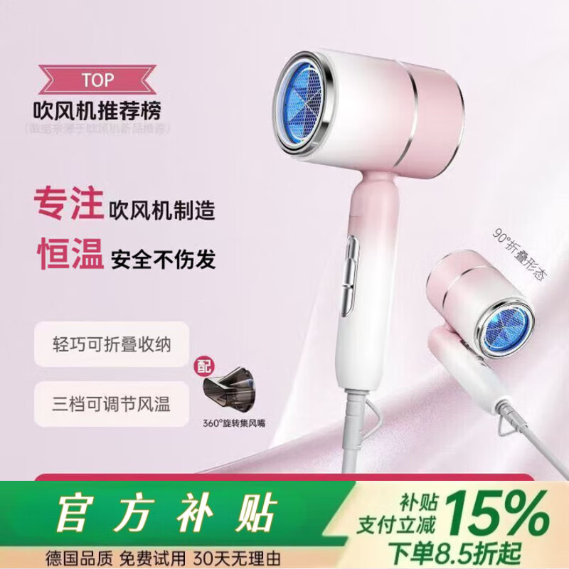 戴森德乐【3C认证】超轻静音吹风机可折叠家用大功率负离子学生宿舍速干不伤发电吹风筒酒店 2025新款【官配1:1]粉色800W 劲风速干+柔顺秀发