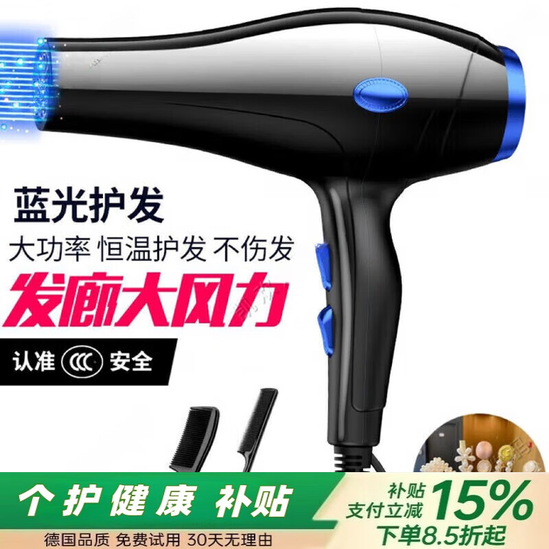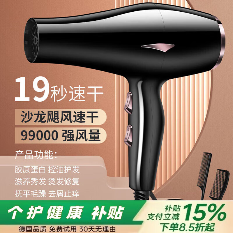 戴森德乐发廊速干吹风机家用大功率3000强风电吹风冷热风宿舍静音 黑110000强风送三 胶原蛋白+抚平毛躁