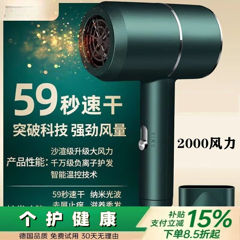 戴森德乐学生宿舍吹风机负离子家用护发大功率宿舍发廊不伤发网红电电吹风 翡翠绿 蓝光负离子+可折叠+智能恒温